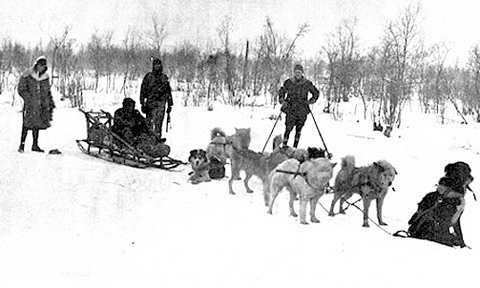Canadian sled dogs with British North Russia Expeditionary Force 1918-1919.