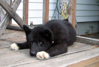 Fan Mail.... 9 weeks old and the beginning of the operatic lows M. Gray Subject: black and white CID Hi Mark, My wife, Courtney, and I have a beautiful black and white CID female, Atka, almost three years-old. I got her in Iqaluit and have had an interesting journey with her (to say the least). I noticed in the June edition of The Fan Hitch that your article has a picture of your dogs and you have a black and white one as well. I am interested in knowing how common the black coat and white "tie" in the front and white paws are in the breed? It’s a silly question but am curious. To me it is rare as of all of the pictures and dogs I have seen in Nunavut, the blacks are rare. Needless to say, we love Atka and her amazing personality and, like you, we do not encounter any polar bears her in Alberta, but there are a few grizzlies who want nothing to do with her ability to growl and make her and our presence known in the mountains. We have been asked to breed her and decided that even though the breed needs help, we did not want to breed her as we were not at a place in our lives to do so – therefore we had her fixed. As some in the community of ISD may feel this is not fair, I am doing my part for the breed by informing many people who ask about our dog its history and how it is NOT a dog for domestic use. I have to explain that Atka is a sled dog and she is used for pulling (scooter, bike, skijoring and a small kick sled) and is in the outdoors 90% of her day. Well, I've rambled…. Just wanted to say "hi" and ask about the black and white in the dogs and if it's a rarity. Yours Truly, Michael Gray Calgary, Alberta, Canada Reply…. Greetings Michael, As you know Inuit Dogs express a broad range of colors and patterns. Black and white dogs as well as white body/black or brown-headed dogs are classic coloration patterns. By our observations black and white dogs are somewhat more common than the brown or black-headed dogs. Nobody is actually recording or tabulating colors and patterns, so our observations and those of our friends are all we have to go on. We are very happy that you have written to us and we especially want to say that for a relatively "new" ISD owner, you have much poise in choosing a path of selflessness in your decision to having your bitch spayed. We can imagine that with others encouraging you to breed Atka, it must have been a temptation for you, but we see you have made the very wise and mature choice at this point in the best interest of the breed. Even we would not be so presumptuous to believe we could responsibly breed ISDs here in Connecticut and expect the progeny to be of the same necessary high quality that traditional keeping and use and Mother Nature's polar climate and challenges has created over the past four thousand years. Thank you again for writing and for being a responsible ISD owner. Sue and I do look forward to hearing more about your adventures with Atka! Please keep in touch. Mark Canoeing with Atka has improved not only our core but also our canoe skills. Courtney Gray at the helm. M. Gray |
