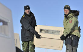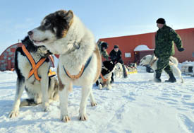 ![]() OP Nunalivut 10 The Canadian military's 2010 Operation Nunalivut or OP Nunalivut 101 (Nunalivut is Inuktitut for "land that is ours") began on April 6th and ended April 26th. The Canadian Rangers invited Greenland's renown Sirius Dog Sledge Patrol2, a division of the Danish military, to join the Rangers on this year's maneuvers. What follows is a transcription of an April 23 satellite phone conversation with Captain Neal Whitman, Deputy Commander of 1 Canadian Ranger Patrol Group and Sergeant First Class Jens Bonde, Chief of Training for the Sirius Dog Sledge Patrol. The interview was conducted by Sue Hamilton, editor of The Fan Hitch. At the time of this interview, these men were in Alert, the Canadian Forces Station, on Ellesmere Island in the Canadian High Arctic, located at Latitude: 82° 28' 60 N, Longitude: 62° 15' 0 W, just 522 miles (840 km) from the geographic North Pole. ![]() NW: Good afternoon. It's about -15 C (5F) right now, which is quite mild for up here. JB: Hello, this is Jens Bonde speaking. SH: Hi. Thank you so much for your time. I really appreciate it. JB: It's no problem. SH: Sergeant Bonde, how many men and dog teams came to Canada? JB: We have brought over our Sled Team Three and it consists of two patrol members and thirteen dogs and all the equipment. I am here as a liaison officer. And I am also a former Sirius Patrol man, having done two years of patrolling over in Greenland. SH: Captain Whitman, what geographical area and how many miles did you cover? NW: For this exercise we covered all of the northern side of Ellesmere Island from the east to the west end and approximately fifty nautical miles to the north – about sixty to seventy normal miles. From east to west, the entire area would be around five hundred miles. ![]() Sergeant First Class Jens Bonde (left) and Sergeant Morten Gormsen, both with the Danish military's Sirius Dog Sledge patrol, transport one of their dogs for loading into a Canadian Forces Twin Otter during Operation NUNALIVUT 10. Photo: Corporal Shilo Adamson; Canadian Forces Combat Camera: Department of National Defence JB: It's the same you know. Greenland being only a hundred kilometers away, it's the same area. We patrol in a very large area of Greenland so we've got all kinds of terrain, very steep cliffs and a just little bit of plains, but not so much. It varies a lot, so we are able to do everything and mainly we go on the ice. So it is the same up here. SH: So basically you're saying that there's no difference in traveling in Canada or Greenland. JB: No difference. SH: Captain Whitman, I am very curious to know why the Sirius Patrol was invited to join the Canadian Rangers on OP Nunalivut 10. NW: This really dates back to last year when our commander, Brigadier General Millar, paid a visit to the Sirius Patrol in Greenland just to see what it is that they do. As you can understand, between two friendly NATO countries we certainly share an interest in safety and security in the arctic environment. So for us it was just the idea of exchanging skill sets because obviously they do things a little bit differently than we do. It seemed like a good opportunity for us to get to know each other a bit and figure out the pros and cons of different ways of doing business and learn from each other. ![]() Preparing the Serius Patrol sledge. Photo: Sgt. Bruno Turcotte; Canadian Forces Combat Camera: Department of National Defence JB: There have been some changes. We now have better equipment so there are more places we can go, but weather-wise you're thinking that has had consequences. We have had to re-route and make some of our timings a little bit different in some areas of Greenland. SH: That is not unexpected, I would imagine. JB: Yeah, probably not but it goes forth and back. In some years the ice is laying in certain ways and other times it doesn't. Sometimes it's good and sometimes it's bad. So it varies. SH: Why is it that the Danish military still feels that the use of dog team patrols is superior to using airplanes or snowmachines? JB: It's a little bit hard but it is very simple and it takes a few men to run an operation like this. And it has been tested for sixty years now so it works. That's why we keep on doing it. With just two men when we're traveling with dogs, if we have problems out in the field, if one dog breaks down, we can still move. Or if a sled breaks down you can use four millimeters thick nylon cord to fix it and you can go on. So we can always be going, not having to depend on oil for an engine and all that sort of thing. The dogs still keep on running. Even if two dogs are injured we can still go on. ![]() Chief Petty Officer 2nd class Glenn Parsons, Camp Sergeant-Major of Operation NUNALIVUT 10, assists the Danish military’s Sirius Dog Sledge patrol in the set- up of their team in preparation for a familiarization patrol around CFS Alert. Photo: Corporal Shilo Adamson; Canadian Forces Combat Camera; Department of National Defence JB: Yes, it works. In those conditions we are working under we find that the dogs are good for our kind of use on that patrol. There are many ways of doing things, but we have built our model and keep on doing that. But still you have to be able to learn from each other and see where you can make some progress. So we always have to be open minded. But we have tested the dogs now for sixty years and they work. SH: Gentlemen, I don't know if you got a chance to read the letter of introduction I emailed up to each of you this morning which explains my interest in OP Nunalivut 10. Part of it is to do this interview for The Fan Hitch and part of it is because I am trying to encourage interest in having the Canadian Rangers develop something like the Sirius Patrol in Greenland as a way to establish a future for the Inuit Dog. I just wanted you to know. NW: Understood. ![]() Photo: Sgt. Bruno Turcotte; Canadian Forces Combat Camera: Department of National Defence NW: That wouldn't rea