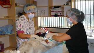 ![]() Foreground: Dr. Marti Hopson and Melissa McGrath. Background: Aimee Elson, Dr. Becky Jackson, Lindsay Rigoli, Katie Lee, Billy MacDonald, Dr. Nicole Gallant. Photo: Chinook Project Chinook Project visits Northern Labrador by Marti Hopson, Veterinary Coordinator Natuashish is a small (pop. approx. 700), very remote town in the Atlantic Canada province of Newfoundland and Labrador (see map). From May 27 to June 1, the town played host to a team from the Chinook Project from the Atlantic Veterinary College (AVC). Three faculty members from the University of Prince Edward Island (PEI) coordinate this project, which has sent veterinarians, technicians and veterinary students into the Canadian North each year since 2006. The project aims to provide veterinary care to dogs and other companion animals in remote areas of the country. The main goal of the project is to reduce overpopulation of dogs, by spaying and neutering, in areas where stray and roaming dogs can be a problem. We also vaccinate the dogs against distemper, parvovirus and rabies and treat them to remove roundworms, hookworms and tapeworms. These measures should increase the health of the animals, as well as decreasing potential public health problems. In Natuashish there are many stray dogs. Mr. Ruben Pillay, a resident of Natuashish, helped organize our trip, and many other community members were also helpful in providing food and lodging to the AVC team. We are grateful to the Mushuau Innu Band Council and to the community in general for their support. Upon arriving in Natuashish (by small plane, the only access), our team of three veterinarians (two from PEI and one from Goose Bay, Labrador), one veterinary technician and four veterinary students set up a mobile clinic in the local fire hall. Working from 9 a.m. until 10 p.m and then cleaning and sterilizing instruments until midnight or later, this clinic was able to accommodate many surgical patients each day, and we were able to spay and neuter over 80 patients, as well as vaccinate and deworm several more. We also performed a limb amputation on a dog that had broken her leg two weeks before our arrival. Porcupine quill removal and other minor procedures were performed as well. ![]() Melissa McGrath (l) and Aimee Elson (r) perform a castration. Photo: Chinook Project Many of the dogs altered were stray animals who recovered quickly from the surgery and were seen the next day lining up at the doors of the fire hall, perhaps because there were often hand outs of a few dog treats. This trip was our first visit to Labrador and the most successful of the five years of the project - doubling the number of spays and neuters done in past years. If financial support permits, the Chinook Project will return to Natuashish in 2011, and hopefully visit some of the other coastal towns of Northern Labrador as well. |
