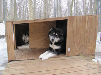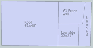Those two doghouses then served as the catalyst for continuing thoughts and discussions about our general doghouse needs. The picture at the top of this page is of our latest design. We’ve built a couple of these houses at this point and we really like them. It sleeps two dogs in individual areas and also supplies them with a covered deck. The decking (floor) is made of 2” x 4”s lying on their sides, spaced by 10p nails. The decking is a robust surface which offers drainage for any water or snow that the dogs or wind brings in. Our dogs seem to really like this design. Here’s how it’s made: Cutting diagrams First, you don't actually need to start with full 4’ x 8’ sheets of plywood if you have enough smaller pieces of ½” plywood to make up the individual pieces. All panel dimensions are based upon the use of ½” plywood. If you are using 4’ x 8' sheets of plywood you can reduce the number to just two if you have a small piece of plywood large enough to make a single 23” x 26" panel. This “divider” is shown in cutting pattern #3. Finally, a few of the plywood panels in the diagrams are missing their dimensional information, however those dimensions are provided in the following narrative. ![]() ![]() ![]() The base (deck) It is made from untreated 2” x 4”s. Your yield will be best from 8' lengths. Space the decking boards with 10p nails (for drainage). The deck is best nailed together. ![]() The floor plan Since I’ve assigned names to the panels, and some of those names don’t indicate a physical location, I figured I owed you an illustration to identify where each went. All the plywood panels attach to the deck or to each other with cleats (I use furring strips) and for this part of the assembly I like to use screws. It makes replacement simpler in case a panel is damaged. Deck screws or sheetrock screws work but deck screws are better. ![]() Here’s a detailed illustration on attaching panels with cleats. ![]() Missing dimensions I didn't put numbers in for the #1 Front and #2 Front. Fear not, they are identical to the first 4' (starting at the 28-7/16" end) of the back panel. Both #1 Front and #2 Front are 24" wide. #1 Front is 28-7/16" high on one side and 26" high on the other, #2 Front is 26" high on one side and 23-5/16" on the other. Furring strips If you don't have them you can use a table saw to rip 1” x 2"s out of 2” x 4”s or 2” x 6”s. Putting it all together When I assemble this house I attach furring strips at the bottom edge of each wall panel first. Then I attach the back wall and the two ends to the base. I cut furring strips to length for the inside corners of the walls so that the walls are stable. I then install #1 Front, and finally #2 Front and the Divider panel. All wall panels are joined to their adjacent walls with furring strips (corner blocking). Try to keep wall structure “square” as you will have only limited ability to square up the structure when you attach the roof. Install cleats all around the top inside surfaces of the walls, lay the roof panel in place and screw it down. The roof is 1" longer than the house. This is intended as a drip-edge on the low end of the roof. Align one of the corners of the roof panel with the wall panels on the 28-7/16" high end first and install a screw to secure it. Then align the other corner of the roof panel with the walls on the 28-7/16" high end and secure it with a screw. On the low side of the roof, if the house is out of square you need to apply sufficient force to the roof panel to bring it into alignment with the back wall of the doghouse. Then put screws every 4" or so around the perimeter. This is the panel where you don't want to miss a cleat and every screw you drive should be left securely in place where you put it (even if you missed) to limit water intrusion. Next take a couple of short sections of 2” x 4” to make the corner post. Measure in place to match the pitch of the roof and attach securely at the roof and deck. On the front of the house there is an unsupported section of roof between the end of #1 Front and the corner post. The roof will be stronger and less likely to warp if you attach a section of 1” x 1” or 1” x 2” to the underside of the roof panel in this area. Precaution This house is HEAVY! You may want to consider building the doghouse in place. Questions? Email me at mhamilton02@snet.net. |