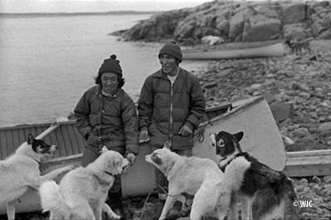 The dogs at Reid Island with some of the Inuit men who lived at the outpost camp