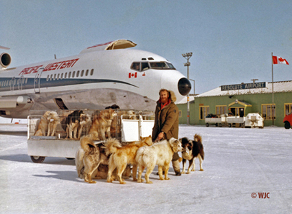 ![]() Resolute Airport with dogs I had purchased ready to depart for Yellowknife on a PWA sponsored flight Canadian Inuit Dogs I have owned, raised and trained: A photo essay; Part 1 by William J. ‘Qimmiliriji’ Carpenter Ed: Beginning with this issue of The Fan Hitch, we are delighted to present Bill Carpenter’s photo essay, a history of the “William J. Carpenter Eskimo Dog Research Foundation”, begun in 1974. Please note that these historical photographs are Bill’s exclusive property and he alone retains copyright. Therefore they may not be reproduced in any manner without his written consent. Requests to use these photographs should be submitted to The Fan Hitch to be forwarded on to Bill.