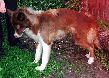 Apijuq's first day back at Toadhall Montcombroux photo The Homecoming by Geneviève Montcombroux What do you do when you get a call that the pup you sold six months previously is no longer welcome in her new home? With lightness in my heart I saw little Apijuq go to her new owner. The person was highly qualified to own a Canadian Inuit Sled Dog and was warmly recommended. So when I got the call that the owner could no longer look after her, it came as a shock. First, there were excuses that the demands of the job, the relocation to a new part of the country, etc., were not fair on the dog. I was horrified when I got an e-mail stating that "I brushed Apijuq this morning...and didn't realize how thin she was. Well, the kids were feeding her..." A healthy CID is never thin. Two mushers who had offered to take Apijuq backed out, and I made immediate arrangements to get my pup back. So as not to create any obstacles, I agreed to pay her air fare and the return of the crate. This demonstrates the level of my anxiety. At the airport, once the formalities were finished, the attendant wheeled the crate with a most subdued Apijuq inside. I did what anyone would do, opened the door, snapped on a leash, and took her out. As she stumbled out of the crate, I cried: "Oh! My God, what did they do to you?" Imagine the skeleton of a dog. Then picture it with skin on top. Her tail was like a rat's tail, with just a tuft of hair at the base. Over the body, the hair was so thin the skin showed through. Apijuq was a perfect illustration of the expression "ribs sticking out". I carried her out to the truck and headed straight to the vet. Several hours and many dollars later, we had a diagnosis. For starters she had whip worms. More serious was a hematocrit bordering on the point of no return. Her complete blood count showed some elements right into the danger zone. She weighed less than 30 pounds. Her sisters weighed 55 pounds. Now two months later, she is out of danger. Although still painfully thin, her hair has regrown and shines with a rich luster. With extra rich food, she is slowly putting on weight. Her hematocrit is almost normal. She is happy and runs back and forth on walks. She is the living proof that this breed is the toughest on earth. Did I send Apijuq's fare and return the crate? No, I did not. I could have sent a large vet bill instead.