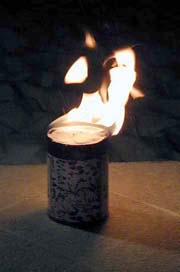 A Do-It-Yourself Alcohol Burner by Mark Hamilton Snow, something we love, is impossible without cold weather. Learning to deal with the cold is the responsibility of every ISD enthusiast. Running sled dogs can be cold work. Sitting for hours in minus-something degree weather on a qamutik will test both your clothing and your metabolism. Given identical temperatures, being a passenger in a basket sled is even worse as you face directly into the wind and movement is more restricted. A hot drink from your thermos is quick help, if you're so equipped. If you must start from scratch, there is a fair amount of time involved in setting up your stove, lighting it, melting out snow or ice. During that time you are dealing with the need to accomplish these tasks while cold. Now we have a low-tech (maybe even best described as "no tech") solution to provide instant heat. All you need is a can with a separate, fairly tight fitting lid (something like a candy can or an empty quart paint can), a roll of toilet paper (the fluffy stuff, not the tissue paper kind) and an 8 oz. bottle of gasline anti-freeze. Remove and discard the center cardboard tube from the roll of toilet paper. Take the lid off the can, compress the toilet paper roll upon itself and jam it completely down into the can (you want the top of the toilet paper at least 1/2" - 3/4" below the lid of the can). Pour the bottle of gasline anti-freeze slowly over the toilet paper. It will all be absorbed, but due to the compression of the toilet paper it won't happen quickly. OK, the difficult assembly part of the project is complete. Now all you have to do is put the lid in place and stow the can with your sledding supplies. If you put a piece of plastic wrap over the mouth of the can before putting the lid in place, you will slow evaporation and are more likely to find the heater in usable condition when you need it. Using the heater is simplicity itself. Take the lid off (including the plastic wrap) and touch the top of the toilet paper with a match or lighter. Warm-up is so short as to be insignificant. With the paper compressed 3/4" or so below the top of the can the flame will burn even in a breezy environment. If it's really windy, move the heater into a more sheltered area. When I made one of these heaters back at the end of October, I put a piece of plastic wrap under the lid, then stored it away. I forgot to weigh the completed unit so I have no real "hard" data for you, but now, at the end of February, it's still a lot heavier than just a can and a roll of toilet paper, so the plastic wrap option comes highly recommended. Any cautions? Well, it's not my invention, but some obvious vigilance seem appropriate. (1) I'd store the burner in an upright position. (2) It burns with a hard to see (alcohol) open flame. Extreme care should be exercised around flammable items such as tents, clothing, sleds and dogs. (3) Gasline anti-freeze is principally alcohol (methanol or isopropyl here in the U.S.), but there are other chemicals in it as well. Therefore it's probably not a good idea to use the heater in a confined area where you'll be breathing a concentration of its fumes. You can add whatever other precautions seem appropriate to you. We saw this handy little device at the Snow Walkers Rendezvous in Fairlee, Vermont this past fall. Rick Chartier, owner of Coureur De Bois Adventures, Cochrane, Ontario, demonstrated it for us. Ed. I'll bet each of us has a piece of information that can be shared as a "tip". Why not write it up and send it in? Fan Hitch readers come from a wide geographic area with vastly differing snow and running conditions. We all could learn from your "tip". |