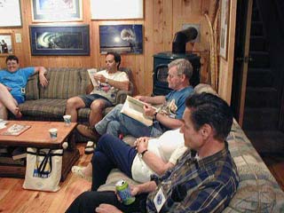 The following morning, after a breakfast of Belgian waffles, French pancakes and real maple syrup we all trooped down to the kennel for a presentation on phenotype, work ethic and breed stock selection. The other morning presentation, the DNA project, ISDI breed registry database and breeding project, and defining the pure dog was held on the lawn outside the lodge, where we were joined by Wintergreen's new Greenland puppies and a couple of adult dogs wandering among the gang. After lunch, we returned to the "big house" for a lively discussion on health and nutrition. We were fortunate to have on hand for these important topics Wisconsin [USA] residents Joe Bodowes, D.V.M. from Foster and Smith Veterinary Supply, and Eric Morris, owner of Red Paw, a dog food formulated especially for mushers. The balance of Saturday afternoon was well filled out with a round table discussion lead by Scott and Terry Miller of Minnesota [USA] on training, working and harness fitting, followed by an eye opening dialogue on political issues of the north. We were most fortunate to have on hand Denise Martin currently living in Ely, but a part time resident of Iqaluit, Nunavut, who gave us her arctic perspective. Preceded by another round of munchies, a "groaning board" of a dinner featuring homemade lasagna, Italian bread, fresh vegetables and fruit, dessert and tons of other goodies was punctuated by a veritable parade of offerings from the Chinese auction. This special event was a big hit and, along with the sale of an assortment of books, both current and collectable, netted over $300. Although lethargic from too much food and the warm temperatures, the stalwart dog people nonetheless returned to the "big house" where they were treated to a pair of outstanding slide presentations, the first by Outward Bound Canada on their winter programs with sled dogs and then, Paul Schurke's historic Bering Bridge expedition and this year's trip to Qanaaq, Greenland. It was then around 10:00 P.M., but there was even more to come, because, thanks to the very generous support of Eric Morris and Red Paw Dog Food, the evening forged ahead with more socialization and gargantuan trays of incredibly delicious gourmet goodies! People eventually shuffled out into the night, most to seek out their bedrolls with a few returning to the lodge lounge to squeeze in as much conversation as possible before exhaustion finally took its toll. Sunday morning came all to soon for the kitchen crew who prepared a breakfast of scrambled eggs, bacon, fresh fruit and other treats. It was no surprise that attendees trickled in slower than on Saturday morning, but what was a bit of a surprise and enormously gratifying was the fact that most of them stayed around for our discussion on the ISDI and where they felt this "loose confederation" should be headed. It was a healthy interchange which continued while the breakfast dishes were loaded into the dishwasher and some of Saturday's leftovers were set out for folks to create take away lunches and travel snacks. In his closing remarks Paul Schurke delivered a thunderbolt to the ISDI when he announced that he was donating all the money collected for the lodging, about $700, to the ISDI's Ted Fox Fund! On the subject of the ISDI's future, it was generally agreed that the ISDI should remain as is with no officers and no "membership" dues, this despite the special challenges inherent of an unstructured group. Folks were happy to know that there was an active DNA project underway. What was specifically requested was the ability for ISDI enthusiasts to contact each other, to know what others are doing with their dogs and to know where the different gene pools are and what might be available to share. A plan to implement this request is now in the works. The final report card on the Gathering was that, while representation by participants from Arctic Canada, Greenland, Scandinavia and other parts of Europe was sadly absent, this first effort was very much a success. This can only be attributed to the many ways in which everyone who came pitched in: providing a venue and physical support for this Gathering, helping with food preparation and clean up, donation of auction items and food goodies, purchasing tickets for the Chinese auction, stripping the beds and starting the laundry process, sharing a breadth of knowledge and experience and background. Every person contributed in some way to our collective achievement. Come to think of it, attendees reflected a mirror image of a great team of Inuit Sled Dogs working together! Given that, it is no wonder that the 2001 ISDI Gathering will remain a memorable event.