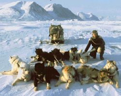 As mentioned the assignment is for two years, and there is a specific reason for that. SIRIUS is organized in six sled teams, each consisting of two men. For the first year of service one is a trainee and, in the second year, the trainer-in-charge. Upon arrival in Greenland one is teamed up with another SIRIUS member, who has already been there for one year, and therefore is a fully trained. As dogsledding is very rare in Denmark, none of us recruits had any previous experience with sled dogs. But as soon as the individual sled teams had been formed, we would each share a team of dogs together with our trainer/team partner. He would then teach us to take care of the dogs and eventually everything he knew about dogsledding. The season for dogsledding in the North and Northeast Greenland coastal regions begins in October and ends in June. During that period the waters of the fjords are ice covered. Around the beginning of November five out of six sled teams leave Daneborg, heading out in different directions. One team remains at the station to run the headquarters. Each sled team consists of two members, eleven Greenlander Dogs and a fully equipped sled weighing 400-500 kg. Depots of provisions are located at hundred-kilometer intervals along the sled routes. The teams return to Daneborg around Christmas time. At the beginning of February the teams again leave Daneborg. In order to cover the entire area, some teams are transported by plane to different starting locations. At a specific time one dog sled team may be patrolling in Hall Land, just some twenty kilometers from Canada's Ellesmere Island, across the Nares Strait. At the same time - more than 1,500 km away - another team may be traveling in Scoresby Land on the East coast. On an average day one travels some 25-35 km. However, in difficult terrain that may be reduced to a mere handful of kilometers. In rare cases we covered up to 100 km in a single day. During travel we always skied beside the sled to ease the weight on the dogs. Because one must be in constant motion to maintain body temperature, SIRIUS travel clothing is light. This principle works perfectly, and in the history of SIRIUS there has never been any serious freezing accidents during the regular travel. Only when crossing smooth ice, free of snow cover, one might dress heavily and ride the sled. Each year, the SIRIUS teams travel a total approximately 18,500 km along the coast of North and Northeast Greenland. During my two years of service, I traveled more than 7,700 km in the 337 days that I was sledding. During July-October, when there is no snow for sledding, the patrol members are busy with such tasks as taking care of the Daneborg headquarters and taking fresh provisions out to the travel depots. Being a SIRIUS member and working with sled dogs is a memorable experience. This might sound like another trivial cliché, but to many of the 250 former SIRIUS members it is without question the strongest experience in their entire life - except perhaps for special family events. In one's second year of service, when one takes over the responsibility for the sled team, one really gets to know the dogs. Each dog has its own character, and they are as different as human beings. Most members of SIRIUS Patrol have a very close and passionate relationship with their dogs, and they will do everything they can to keep the dogs in good health and condition. Right from when the pups are quite small they spend time every day to gain the trust of each pup and dog. One must handle the dogs with a friendly but firm hand, so that one can be sure that they will obey their commands, especially on that day, when one inevitably encounters a critical situation. This could be meeting thin ice, a polar bear or sudden blizzard. As reward for treating one's dogs well, the dogs will respond with unconditional devotion. They will pull one's sled and their own weight each and every day, and they will be happy all along. The worst day in the life of a SIRIUS member is the day when the team is handed over to one's successor. Since the day I left SIRIUS, I have neither done any dogsledding nor owned a dog. The latter simply because I have not possessed, what I think is the right environment for a sled dog.