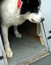 Anti-fatigue Mats by Mark Hamilton We don't live where we can just walk up to the kennel, hook up a team and mush straight out of the dog yard. We have to transport our dogs and supplies to the trails. But even mushers fortunate enough to be able to start their training runs right from their dog yard usually face the need to transport dogs sometime during the season. Most mushers use bedding material in their dog box. The most popular choice seems to be straw. In our dog box, instead of straw we use industrial/workshop anti-fatigue mats, about 3/4 inch thick, made of foamed PVC. And we're very happy with the choice. Some of the advantages of anti-fatigue mats are: (1) This is exactly what they are made for, to "soften" a surface, absorb vibration, isolate the object on top from whatever the mat rests upon and, in this case, provide extra comfort to the less well padded points of canine anatomy (elbows and knees). (2) They're totally non-absorbent. Have you got a drooler? Tired of freshening the bedding in your dog box? Anti-fatigue mats can be quickly cleaned with a splash of water and a squeegee. (3) They're durable. We're still using the mats fitted to the dog box in 1997. After cleaning, the mats still look like new. Our anti-fatigue mats came from one of those "big box" lumber/hardware stores, but they are widely available from a variety of sources including mail order/internet. The mats are easily cut to size with a utility knife, which is important since most mats will be larger than needed. With careful shopping you may even be able to find mats large enough to cover the bottom in two or more boxes. Got a tip you'd like to share? Email it to mail@thefanhitch.org or snail-mail it to Mark Hamilton, 55 Town Line Road, Harwinton, CT 06791, USA. |