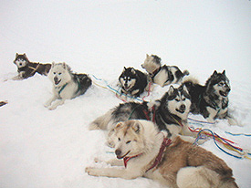 Frank Hashek of Indiana, USA, who adopted Misty, a Mawson Station, Antarctica dog, after she was retired out of the Minnesota Voyager Outward Bound School program stated, "When adopting an Inuit Dog, the most important thing to keep in mind is that they are working dogs, whose needs must be met differently than the needs of a typical domestic dog. The Inuit Dog requires much more mental and physical stimulation than a typical domestic dog. Without this stimulation, I believe that they would be quite difficult to manage… Inuit Dogs are not house dogs." So what circumstances are right for a retired Inuit Sled Dog and what sorts of activities can you engage them in? For all the obvious reasons, such as their vocal nature and the need to keep them appropriately active, retirees, like ISDs of any age, are suited to country and not city living. These dogs ought not be spending their remaining years on concrete. In existing working kennel situations, there would be opportunities for recreational sledding, assuming the older dog could be safely integrated, without bloodshed or worse, into a team - a major challenge for a stranger in an established pack of ISDs. If the retiree is of strong enough character (like a boss dog, to avoid being taken down by an organized pack of youngsters), he or she may be able to manage/train to work in harness a bunch of puppies who, for whatever reason, may not have their parents as teachers. In a kennel like ours, no demands are made of retirees. They are free to engage in as much or as little activity as they wish, although we make sure they get plenty of stimulation to avoid boredom and to keep them from devising ways to get into "trouble." A retiree or two in a small kennel or for a person relatively new to Inuit Dogs might make a dandy recreational team for carting, sledding or skijoring. A male retiree may still have some breeding vigor and, if he has been deemed worthy of passing on his qualities, could be a valuable part of a pure Inuit Dog breeding program. We typically imagine that the arctic Inuit Dog's retirement "gift" equivalent to a pocket watch or rocking chair, often given to humans leaving the work force, is a bullet. But a working dog's retirement need not be so final. With the right combination of circumstances, the twilight years of retired arctic Inuit Dogs can be as enjoyable for them as their former owners would like it to be, and for their future owners, too. |
