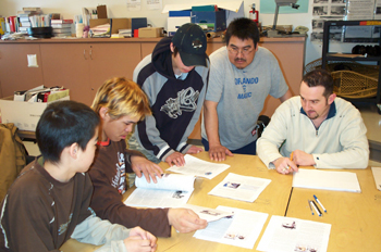 Present from left to right: Tommy Sandy Annanack, Larry Annanack, Andrew Obed, Daniel Annanack (IPL Teacher), Gary Thibault (Student Support Staff). photo: Brazeau ISDI Launches New Partnership in Nunavik Beginning officially with this issue of The Fan Hitch, the hard copy edition of ISDI's journal is now printed and distributed by the IPL (Individual Paths of Learning) students of the Ulluriaq School in Kangiqsualujjuaq, Nunavik, under the supervision of Mark Brazeau, Daniel Annanack and Gary Thibault. Until now it had been prepared and distributed by ISDI's Canadian Coordinator, Geneviève Montcombroux, in Manitoba, who has said of the new agreement, "Absolutely great! I'm happy to pass on the printing and distributing of TFH." Sue Hamilton, editor of The Fan Hitch, is also enthusiastic about the new arrangement. "It means so much to me! Managing the subscriptions, the students will get to develop some basic business and organization skills associated with this part of the publishing process. And then, of course, there's the connection of our shared interest in the restoration of the pure Inuit Sled Dog to its native habitat. The ISDI is turning over all subscription fees to Ulluriaq School's Qimmiit Utirtut program. And we hope that the powers-that-be will take note of what we're doing and be positively influenced by this budding alliance and will want to pitch in as well to further support the return of the pure ISD." "I was also very excited about our students being involved with The Fan Hitch," said Ulluriaq School's Vice-Principal Mark Brazeau. "They were very proud when I showed them the line [in the revised masthead] 'Paper copies printed and distributed by the IPL students of Ulluriaq School, Kangiqsualujjuaq, Nunavik'. They were kind of surprised when I told them that we would also be sending subscriptions to other countries. They are taking their role very seriously." Subscription fees and payments for back issues of the 8.5in. x 11in. full-color, magazine-style format print version of The Fan Hitch will still go to Geneviève Montcombroux, who will then forward the subscribers' addresses and payments in Canadian dollars on to Kangiqsualujjuaq. Currently, the cost of a one-year (four issues) subscription of The Fan Hitch in Canada is $18.00 CAD, in the USA $16.00 USD. Elsewhere: $22.00 CAD per year, postage included. Send requests, with checks payable to "ISDI", to Geneviève Montcombroux, P.O.Box 206, Inwood, Manitoba, R0C 1P0, Canada. |