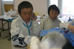 were you invited? Photo courtesy of CAAT D.L.: We don't solicit invitations. We only go to areas where there are no veterinary services available. We receive about two invitations a month from somewhere in the world. We've been trying to get more Canadian projects but it's really difficult to do here in Canada because we're so well serviced all over the country by veterinarians. T.F.H.: Not up north! D.L.: Right, and that's the only place we can go. Unfortunately the costs to go there are very prohibitive. From Ottawa to Igluliq, where we went in Nunavut, was $4000 per ticket. Thankfully, the airline gave us 75% off per person. Eleven of us went, invited by a concerned resident in the community. They had a dogsled race, the Nunavut Quest, in April this year and a lot of the dogs came back and died of distemper. If the government of Nunavut or of Canada wants to keep that breed of dog - it's a very distinct breed, a beautiful dog - I don't know why they can't provide vaccines to all these communities. There are only twenty-six communities. I am sure that the vaccine companies would even help them out by donating some. So that's the main reason we went to Igluliq. This concerned resident got the mayor of the hamlet and the senior administrative officer on board, and we received an official invitation from them to come. It wasn't to do spays and neuters because we don't want to spay and neuter that breed out of existence. We would selectively spay and neuter maybe some of the older ones or ones that maybe have mammary tumors. And that's what we did. A lot of other breeds, mixed breeds we just spayed and neutered if the owners wanted that. We did get all the dogs in the community, including all the dog teams, vaccinated twice (it included the booster) while we were there and rabies vaccinations were also given plus all their deworming were done. It was a great experience! T.F.H: What were you using for a wormer? D.L.: We use what's called Droncit because there's a fish tapeworm that dogs get. Droncit is the only kind of wormer that gets the Echinococcus tapeworm. And that's very transmissible to humans. T.F.H.: And that's why the Inuit Sled Dog International is trying to encourage the establishment of veterinary clinics, because it's not only a case of the health of the animals but human health as well. D.L.: Oh, for sure. I don't know if that's going to happen any time soon. When we were in Iqaluit at the airport we happened to meet a girl that was just heading off to Saskatoon to veterinary school. She was an Inuit woman, probably the first Inuk veterinarian that will graduate in Canada. She's coming back to Iqaluit to work. I don't think there are any vets in Nunavut at all. Our vets have passed written exams that are totally national. Across Canada their license is supposed to be good. However, while we were in Igluliq we found out that our veterinarians were supposed to be licensed to practice in Nunavut for the two weeks we were there. And it costs $200 a year to license each vet. Nunavut was hassling us about that. It was the registrar in charge of licensing for all professionals who got wind that we were there. We're going to try contacting Ottawa and go higher up to see if we could get those fees waived every time we go because we can't expect our veterinarians to pay that fee and CAAT can't pay it either.