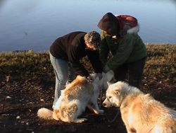 is CAAT headed off into the north next? D.L.: We have started an Ontario chapter of CAAT. There are about thirty members and they are going to be in charge of Nunavut because they're closer to it and that makes more sense financially. And they're going to be in charge of northern Ontario also. They are already responding to some communities for next year. They are hoping to go into Iqaluit and then branch off to three or four other communities with one or two vets per team: Pond Inlet, Clyde River, Dorset, Pangnirtung. They're trying to get something going for next summer. T.F.H.: What about missions to Nunavik? Has anyone in Nunavik approached you? They certainly need the same help that Nunavut does and some communities in Nunavik are starting the revival of the pure Inuit Sled Dog there. D.L.: Nobody from Nunavik has contacted us. I'll have to keep that in mind. Do you have a contact person there? T.F.H.: I will get you some names. D.L.: If you could email me with any contact in the north that would be great. T.F.H.: Are there any opportunities for Inuit Dog enthusiasts who have veterinary skills to join your missions? D.L.: Possibly. As of right now we've only been taking Canadian citizens/residents as that's what we have written in our by-laws. T.F.H.: My goodness, you guys are fantastic! You obviously see that there is a need for veterinary services established. ISDI has been hoping to have at least veterinary visits to the North to help people and their dogs. They need it and now you know they need it. By telling your story maybe we can get more interest and, most of all, convince the governments up north to establish veterinary clinics and systems to help the distant communities as is done in Greenland where the veterinarian, who has a permanent clinic in Ilulissat, has contacts in each of the other communities to perform some services when she cannot be there herself. We can't tell them what to do, of course. But is there any way that CAAT can be an advocate to encourage the governments to establish centralized facilities? If you could help with that or speak on behalf of that, especially from the standpoint of zoonotic diseases, you will have accomplished Nobel prize winning stuff! D.L.: For sure we could be. I think that's what we're trying to focus on wherever we go, the public health issues. It seems to be more well received if we do that rather than just going in for the sake of the dogs.