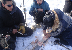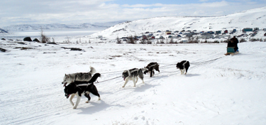 a school expedition Photo: Annanack Given that the primary goal of Qimmiit Utirtut is to revive traditional mushing and the Inuit Dog, it would be fair to say that Leevan is the cover boy for the project. Leevan’s story is especially unique because unlike many mushers in Nunavik, Leevan and his family do not own a snowmobile. Leevan is not mushing dogs for the purpose of tourism, racing or as a hobby. His dogs are his only mode of transportation and mushing has become his way of life. Leevan uses his dog team to hunt ptarmigan, seals and other wildlife. He uses his dogs to transport freshwater ice blocks because his family prefers not to drink the treated tap water. On one occasion, Leevan and three of his dogs even towed a hunter and his broken snowmobile back to town. Providing